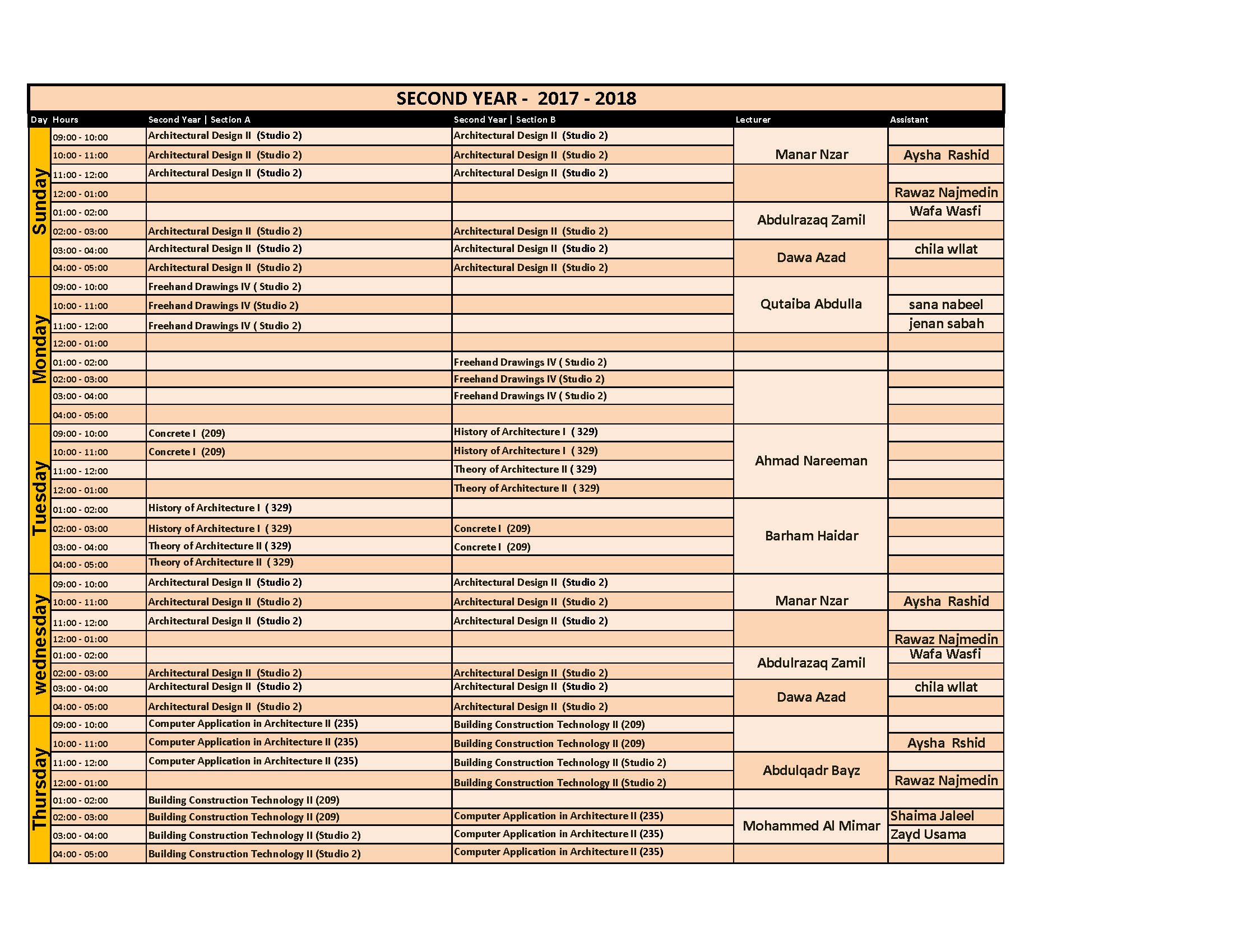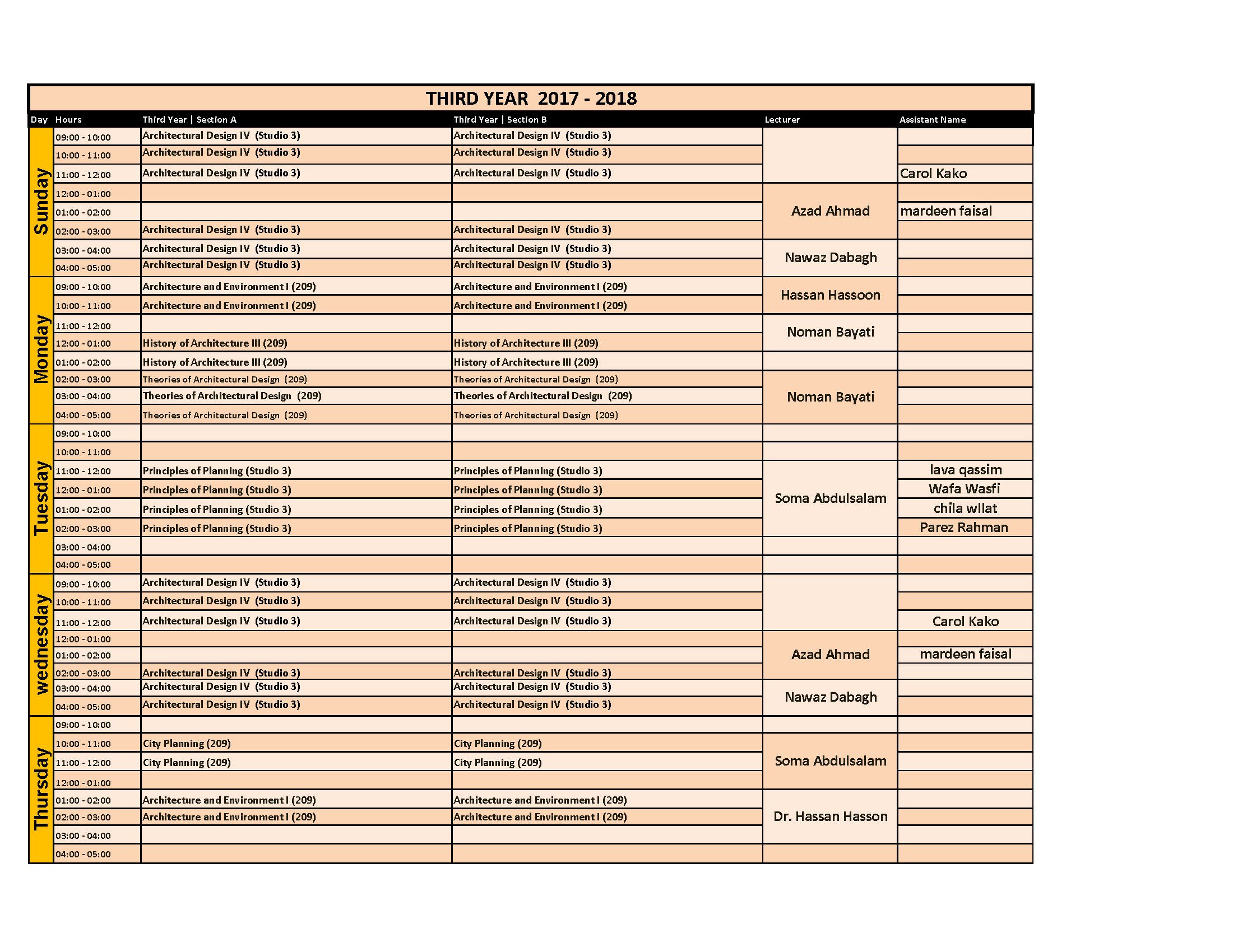 Final spring 2018 Architecture Department's Weekly Schedule ...