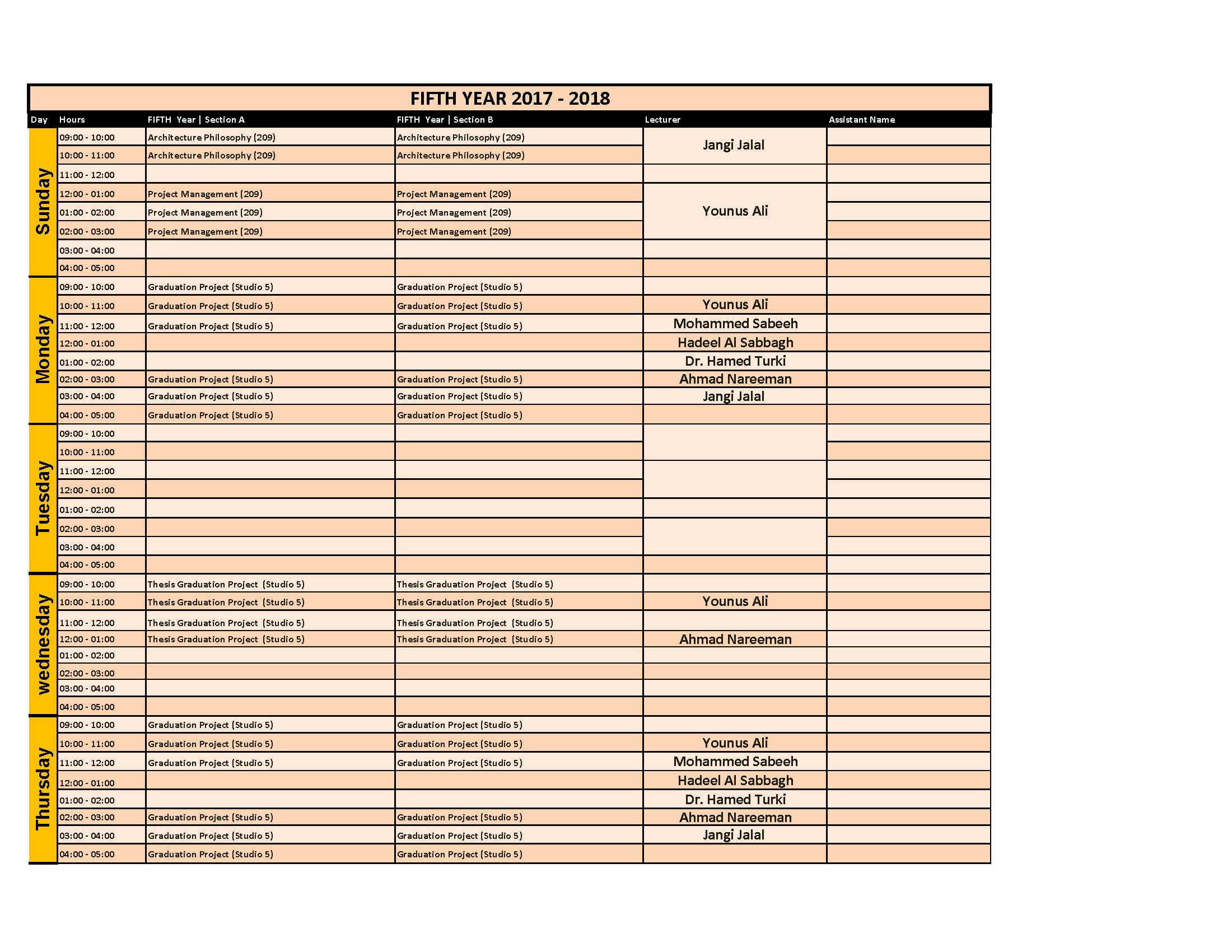 schedule | Architecture Department